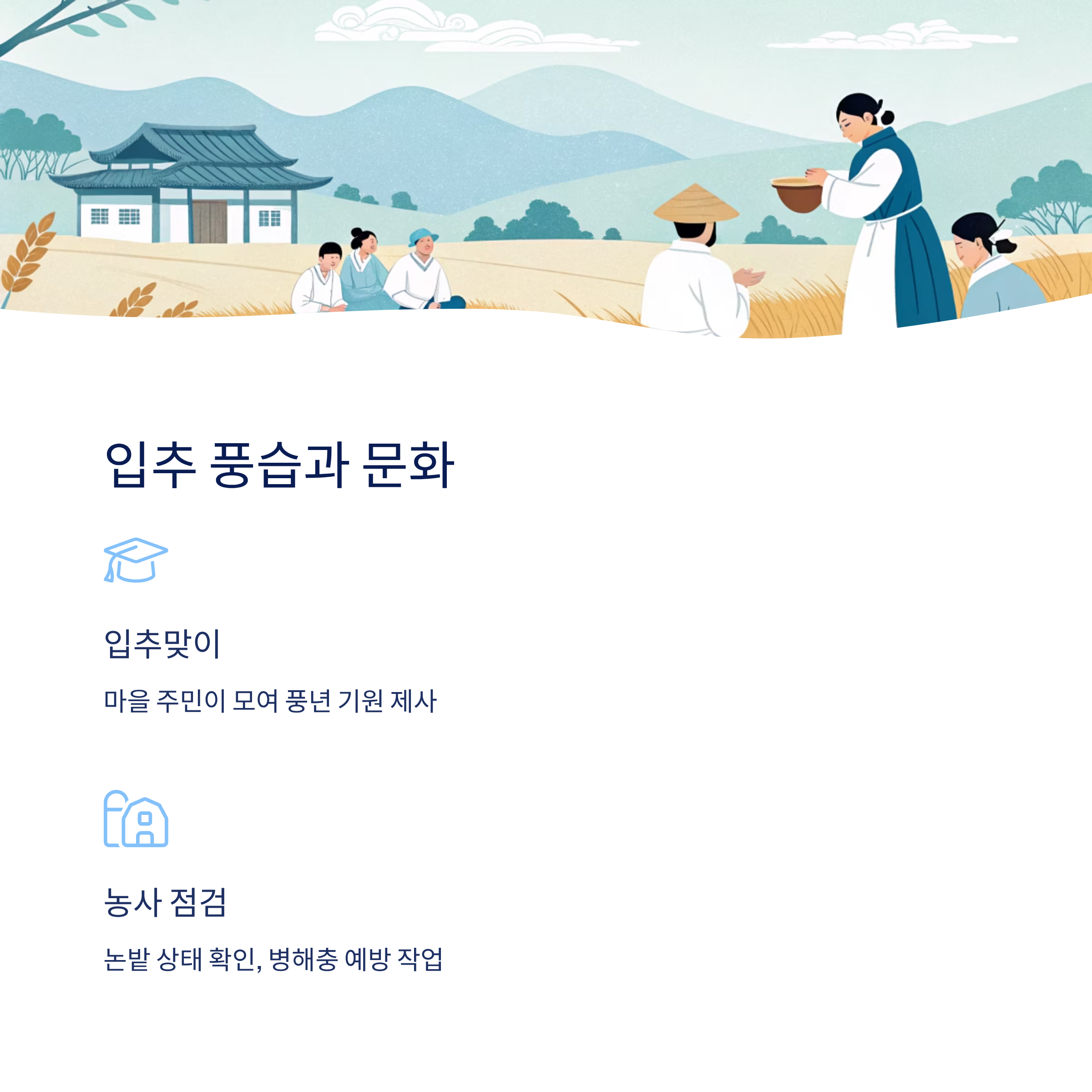 A5. 옛날 농촌에서는 입추맞이 제사를 지내며 풍년을 기원했어요. 마을 주민이 모여 자연과 조화를 기원하는 행사였답니다.