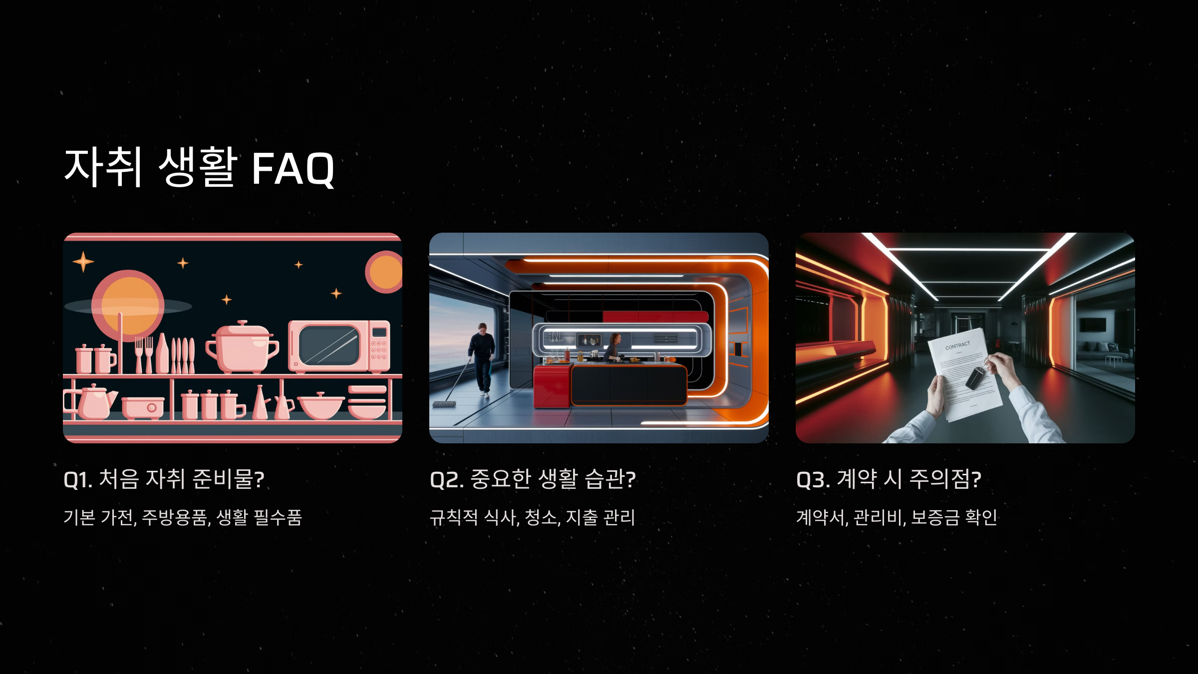 이제 자취와 관련된 궁금한 점을 해결해 줄 FAQ 섹션으로 넘어갈게요! 🧐