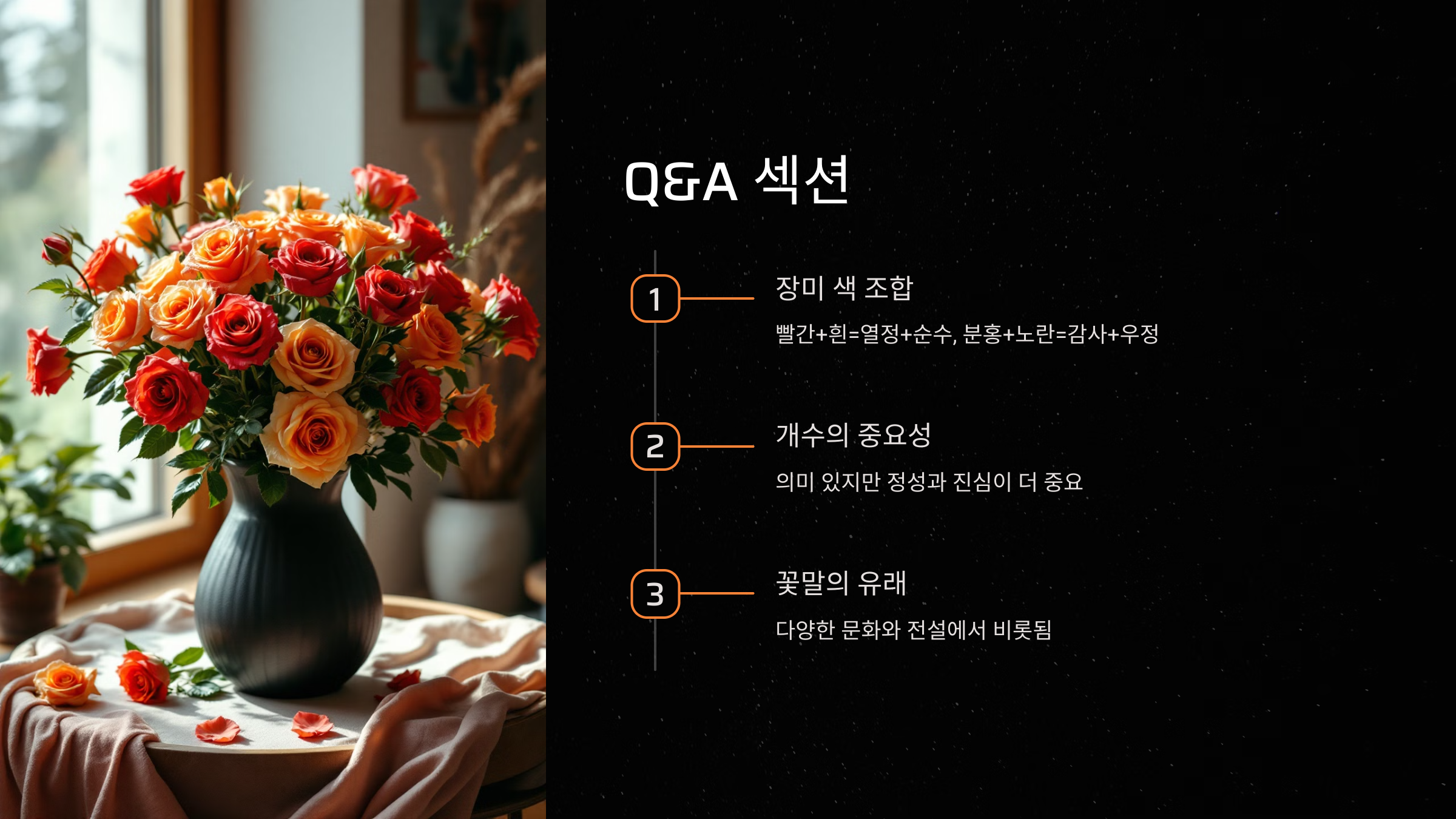 A. 개수에 특별한 의미가 담겨 있지만, 상황에 맞게 자유롭게 선택하셔도 괜찮습니다. 중요한 건 정성과 진심입니다. 💕