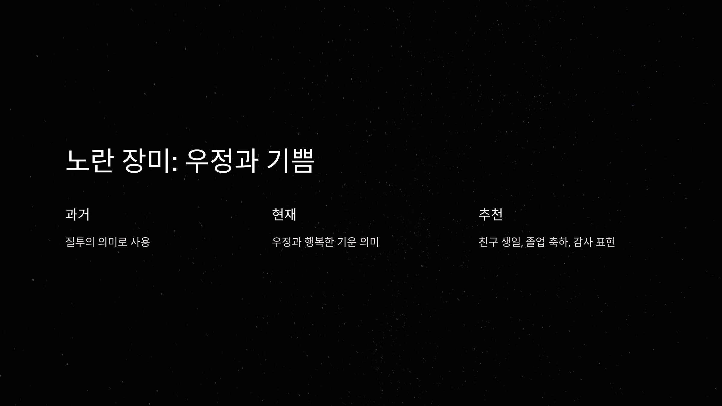 하지만 현대에 이르러서는 주로 우정과 기쁨의 상징으로 변화했습니다.
