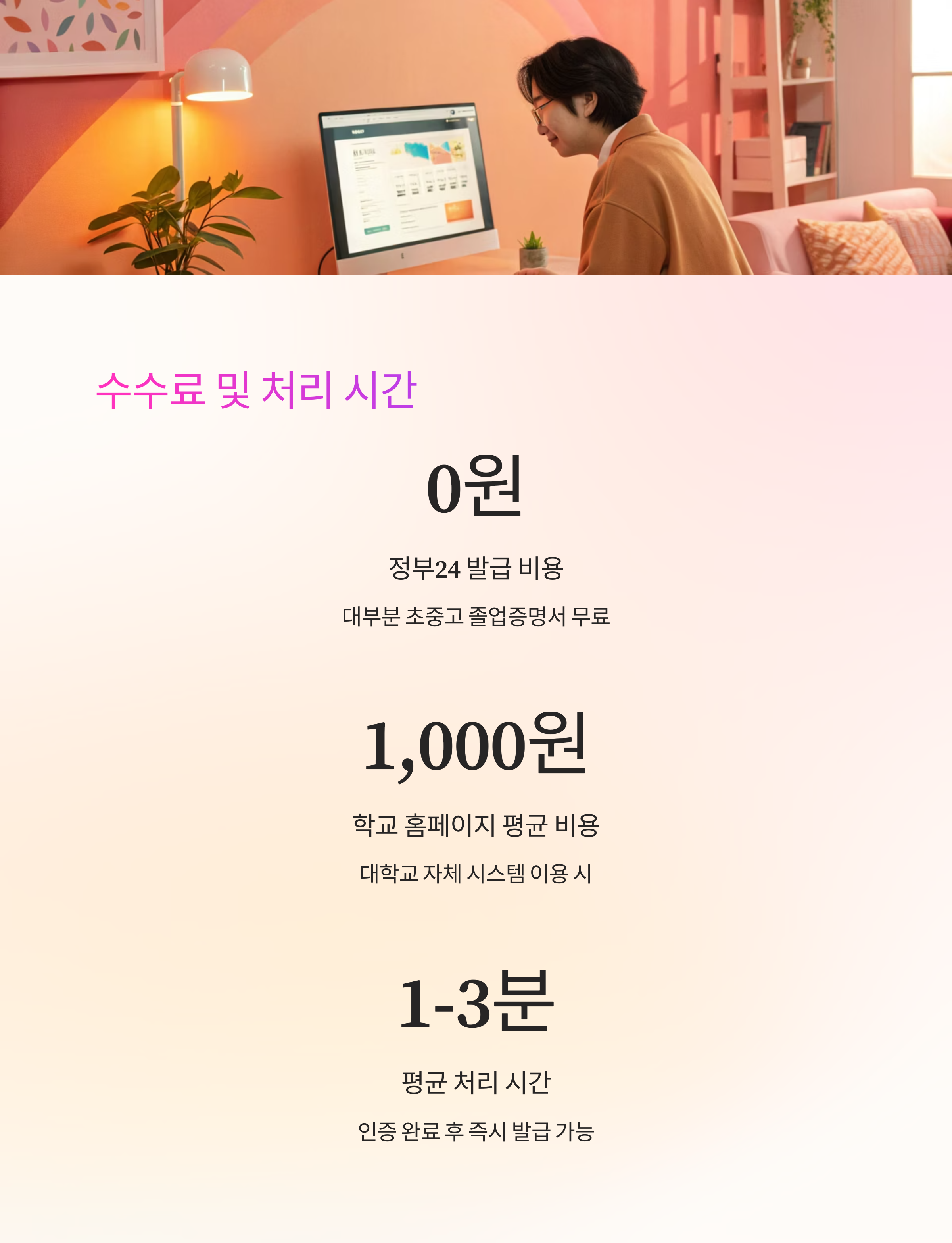 | 학교 홈페이지 | 500~1,000원 | 3~5분 | 본인 출력 or 우편 |