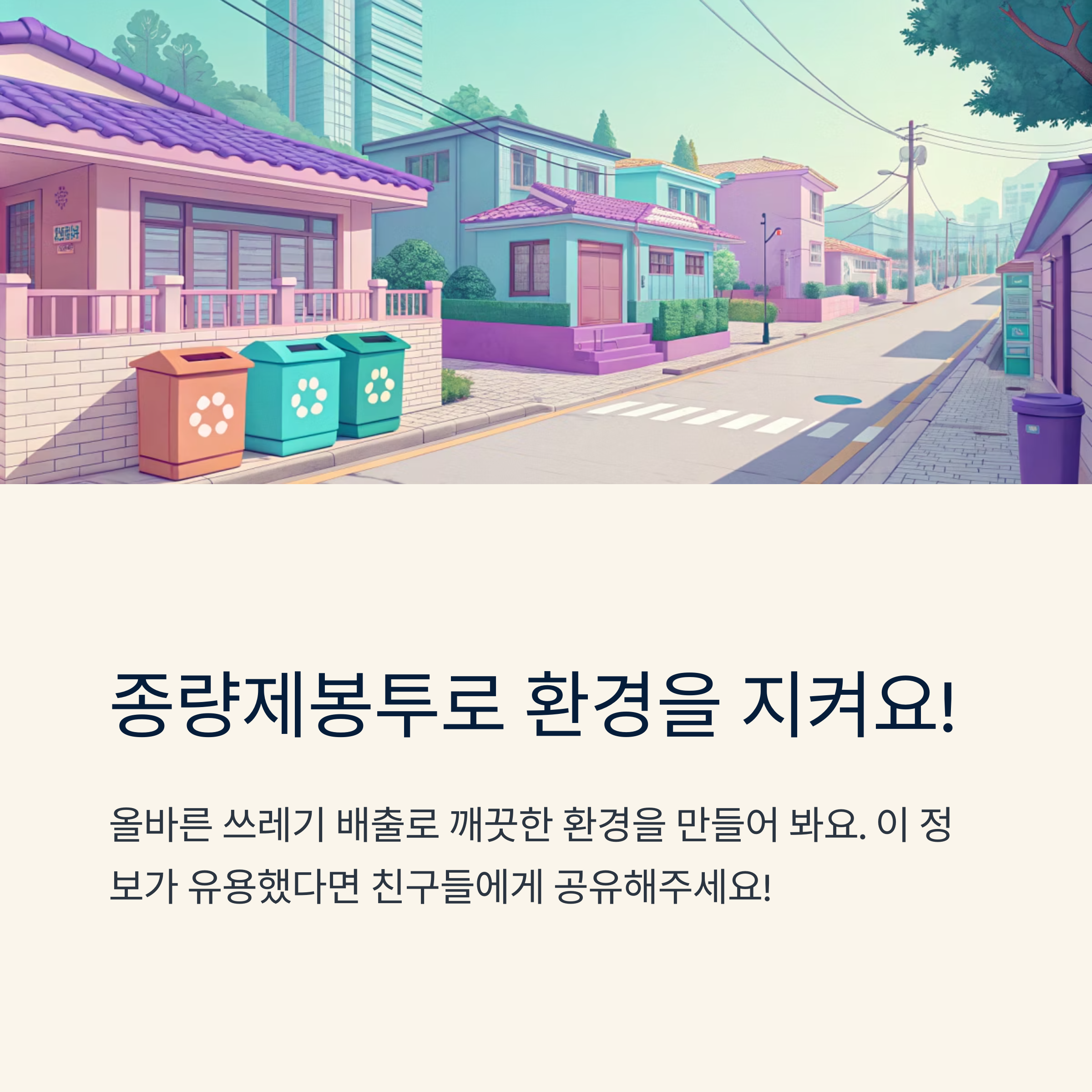 종량제봉투 제도는 단순히 쓰레기를 돈 주고 버리는 게 목적이 아니에요. 궁극적인 목표는 쓰레기를 줄이고, 재활용률을 높이며, 환경을 보호하는 데 있어요. 그래서 종량제봉투는 일종의 ‘생활 속 환경교육’ 도구라고도 할 수 있죠.