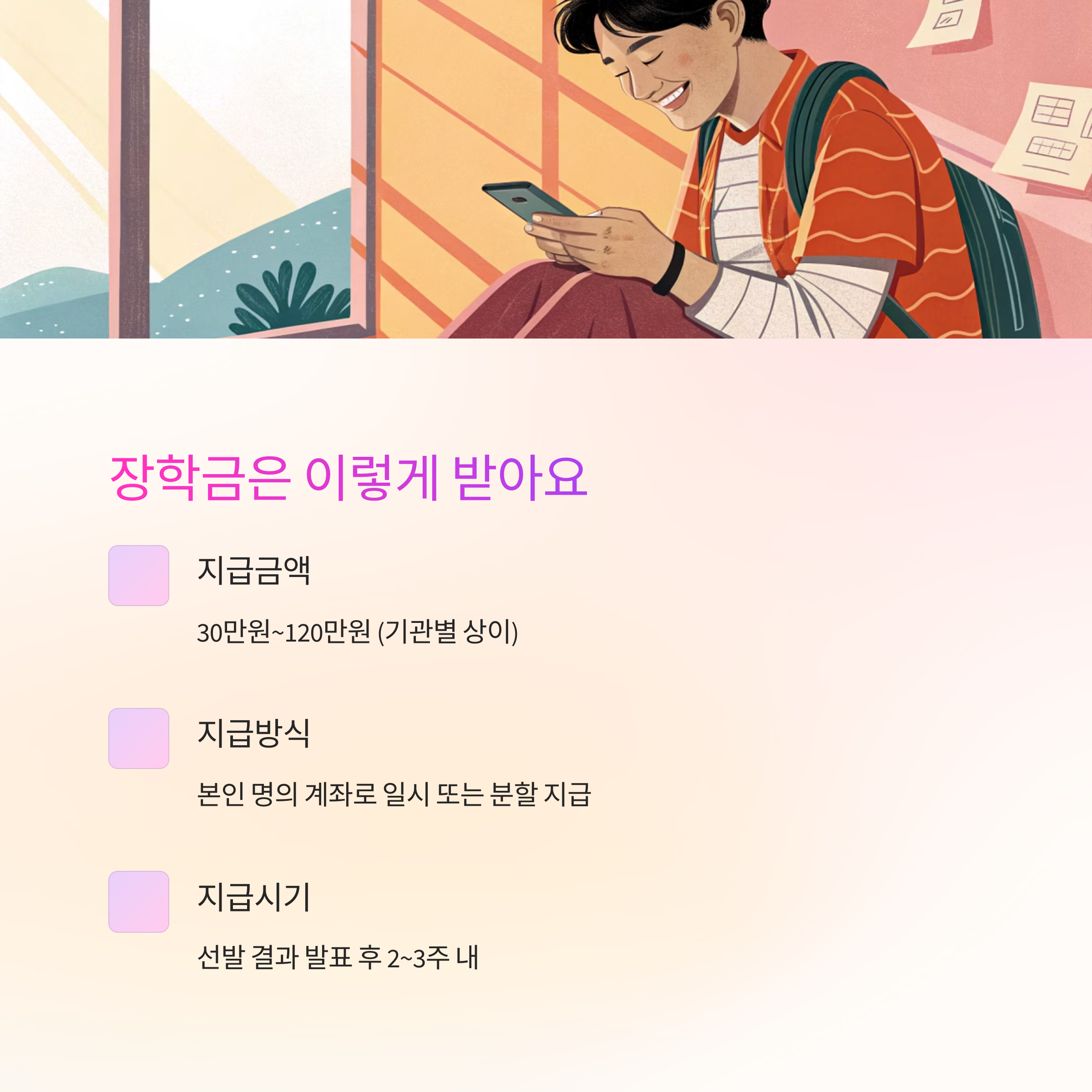 심사가 끝나면 문자나 이메일로 결과가 안내돼요. 이후 지정 계좌로 지급되며, 지급 후에는 학업 계획서나 사용 내역을 보고해야 하는 경우도 있어요. 이 점도 염두에 두고 관리하는 게 좋아요. ✍️