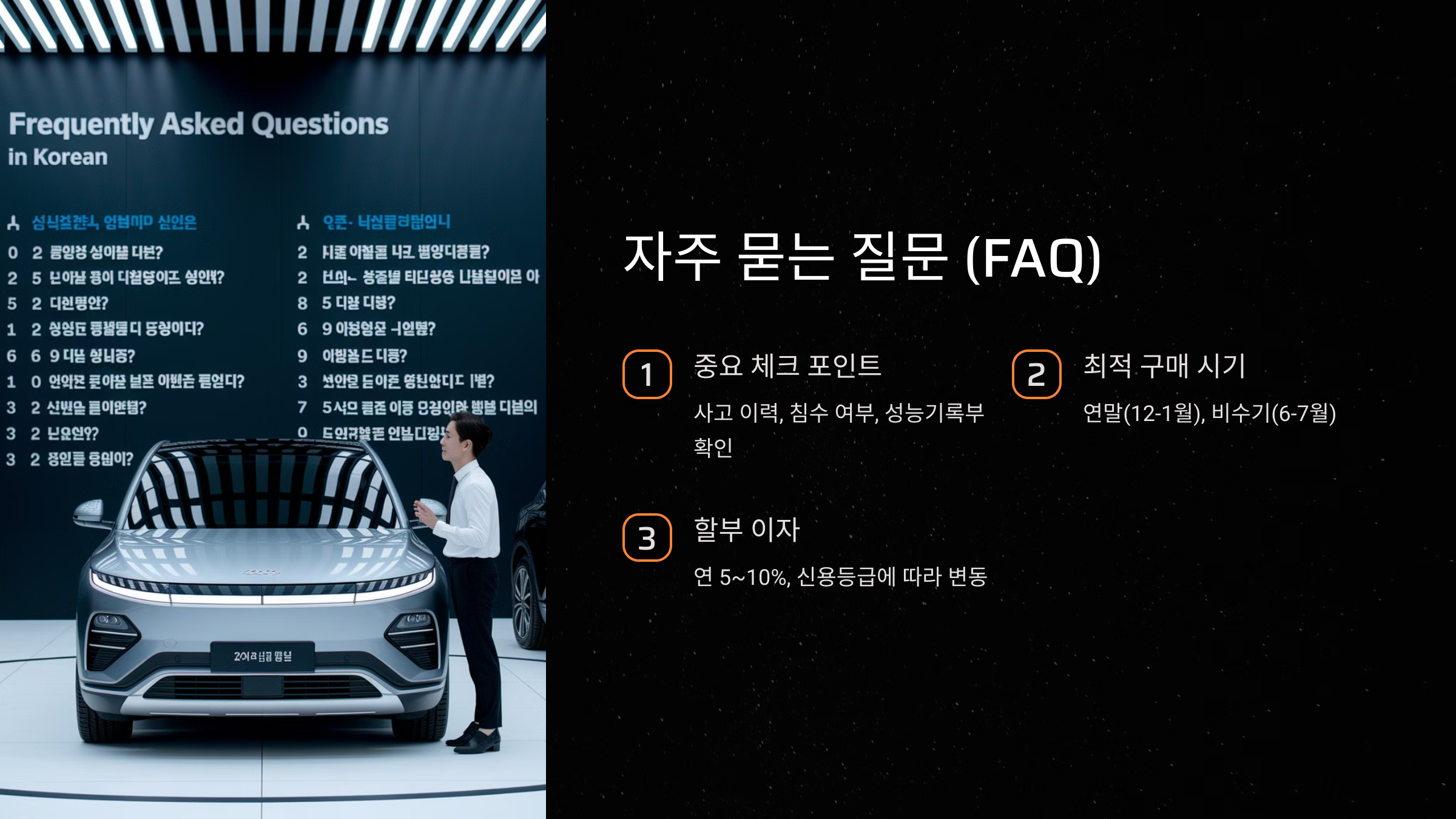이제 중고차 구매에 대한 자주 묻는 질문들을 정리해볼게요! 📢