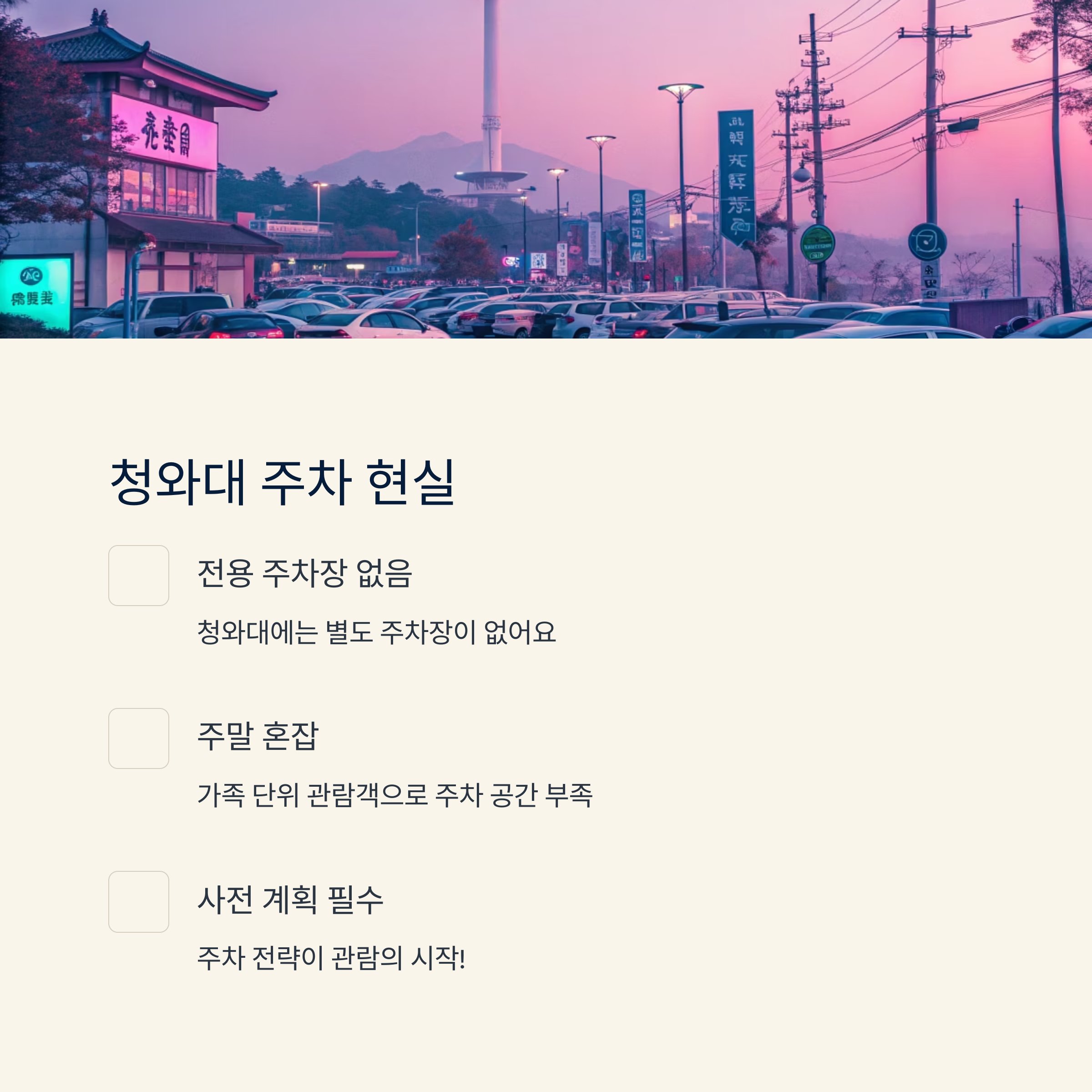 내가 생각했을 때 가장 효율적인 관람의 시작은 바로 '주차 전략'이에요. 오늘은 청와대 관람을 주말에 계획하는 분들을 위해 주차장 정보와 꿀팁을 세세하게 알려드릴게요 🚗