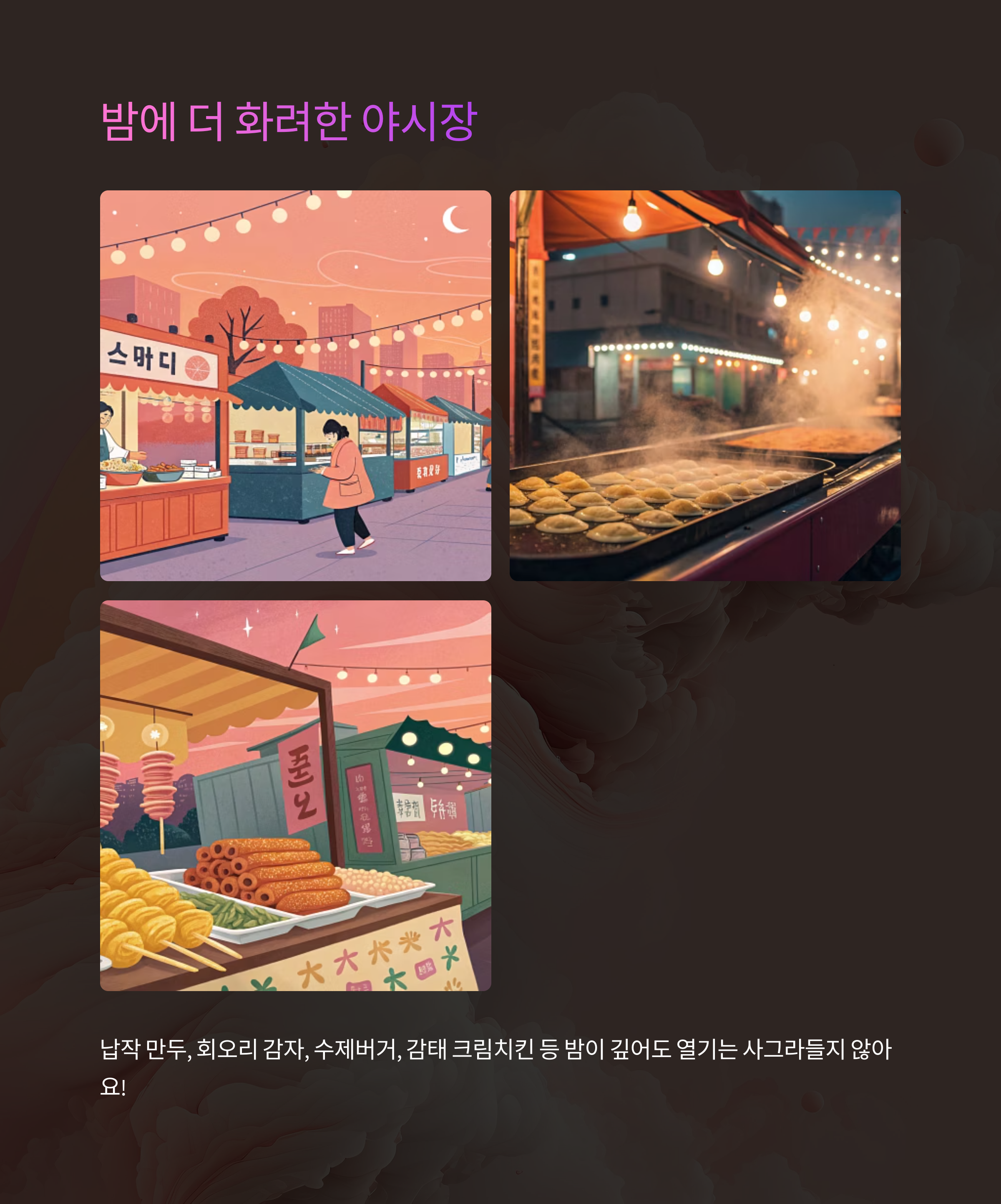 🌟 야시장 인기 먹거리 모음