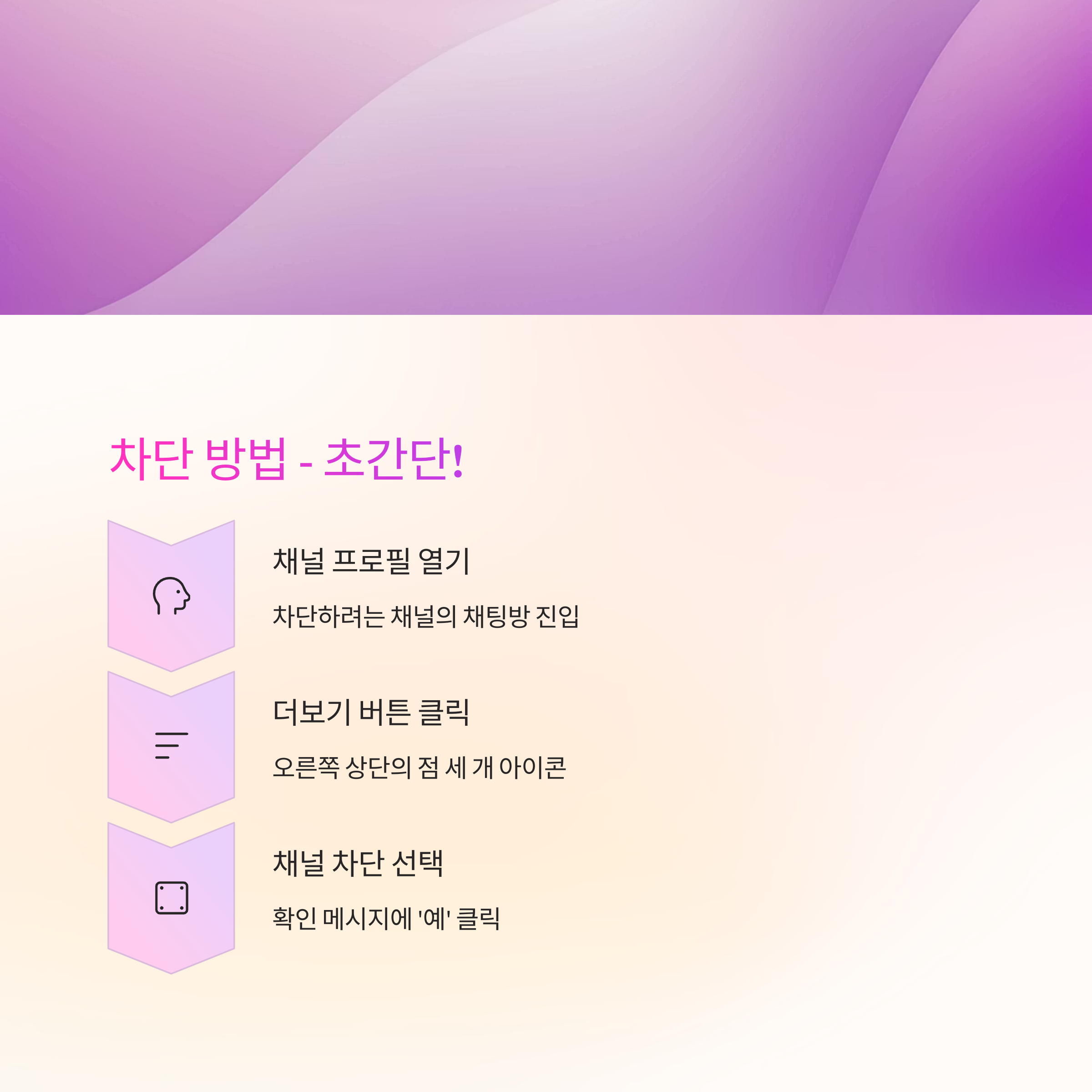 프로필 화면에서는 채널이 보내는 알림이나 콘텐츠를 확인할 수 있는데, 오른쪽 상단에 있는 ‘더보기’ 버튼(점 세 개 아이콘)을 누르면 다양한 옵션이 나타나요. 여기서 '채널 차단' 메뉴를 선택하면 됩니다. 이때 ‘정말 차단하시겠습니까?’라는 확인 메시지가 뜨는데, 여기서 ‘확인’을 누르면 차단이 완료돼요!