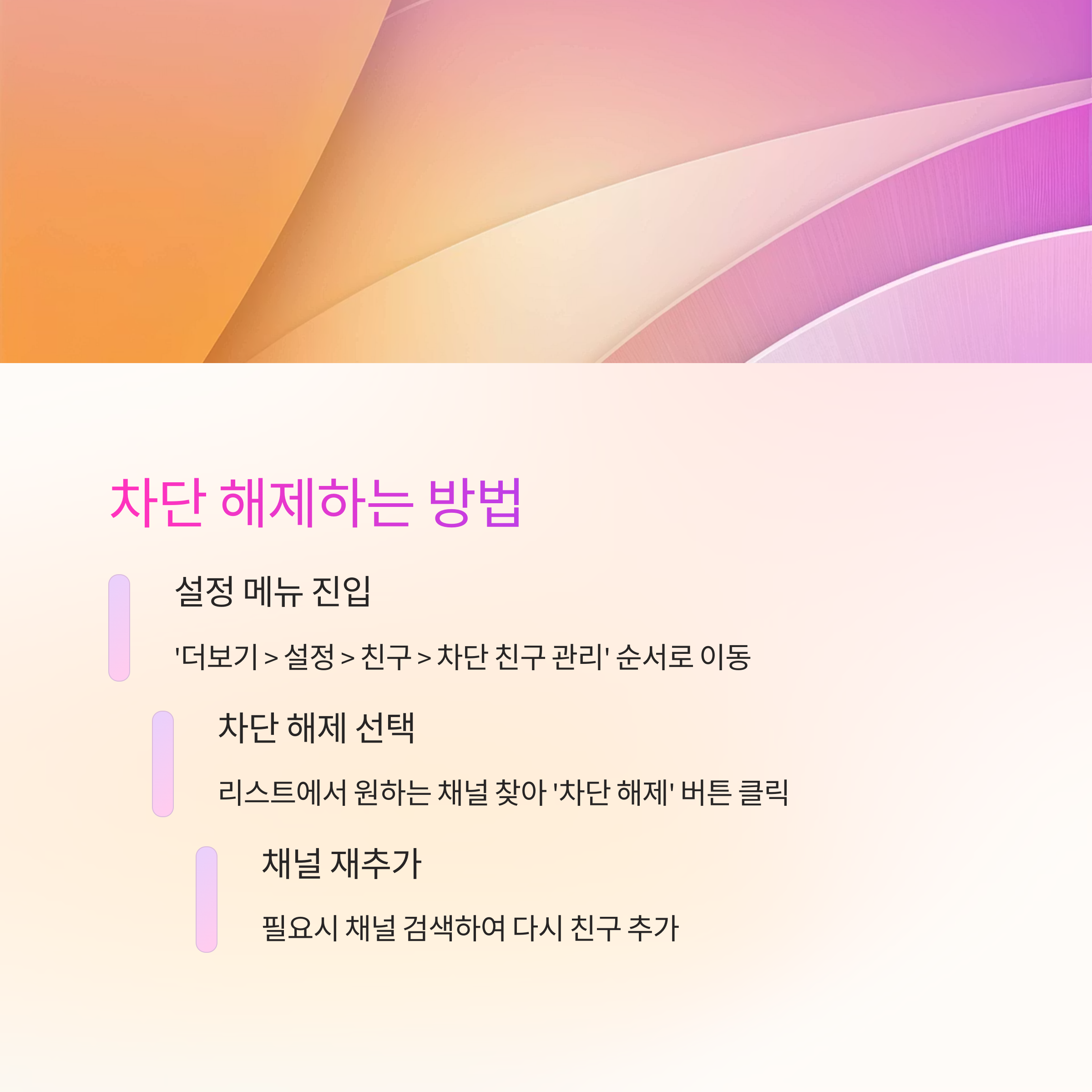 가끔은 실수로 채널을 차단하거나, 나중에 다시 정보를 받고 싶어질 때도 있죠. 이럴 때는 언제든지 차단 해제가 가능해요! 😊
