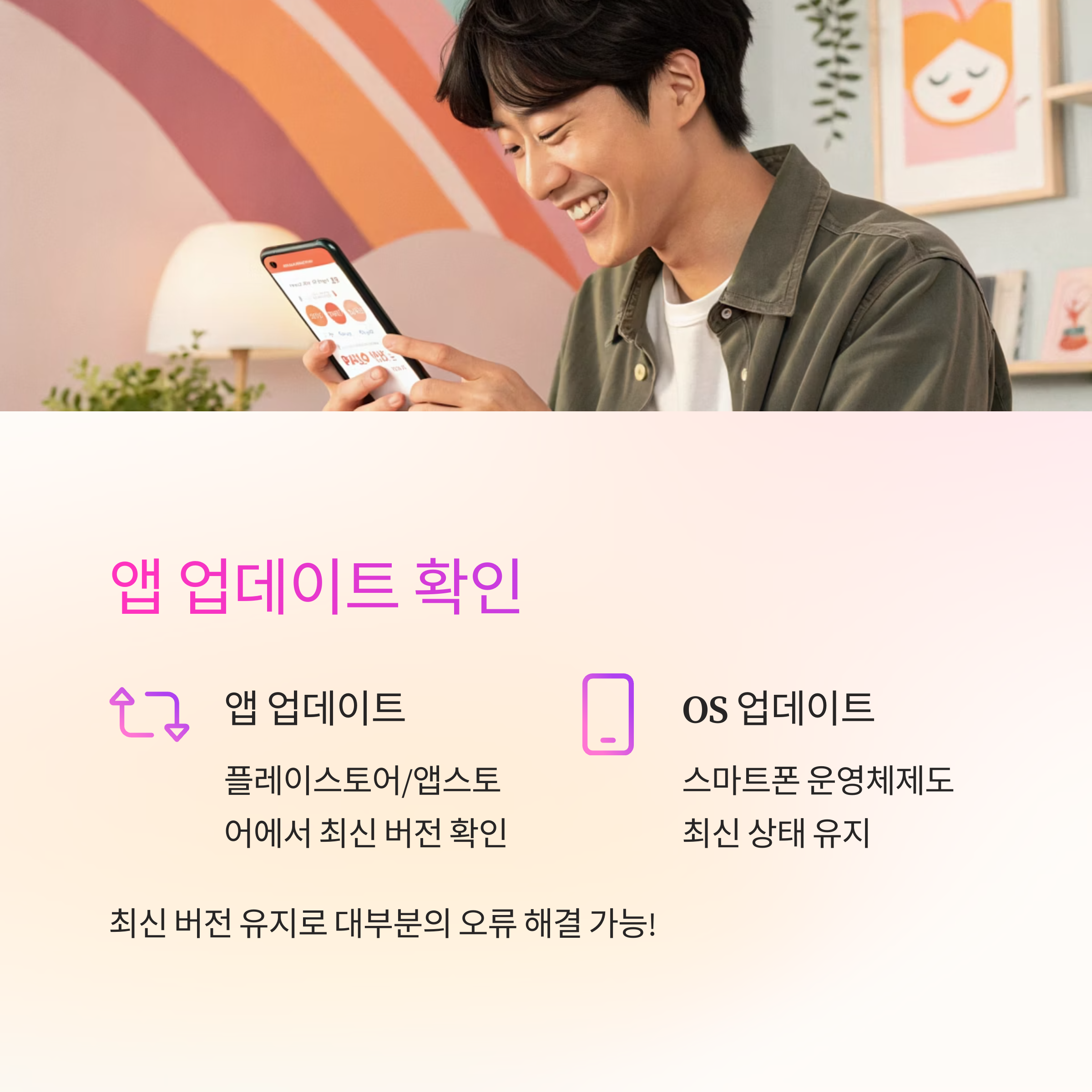 또한 스마트폰 자체의 운영체제가 오래된 경우에도 앱이 불안정하게 작동할 수 있어요. 설정 → 소프트웨어 업데이트 항목에서 운영체제도 최신으로 유지하는 걸 추천해요.