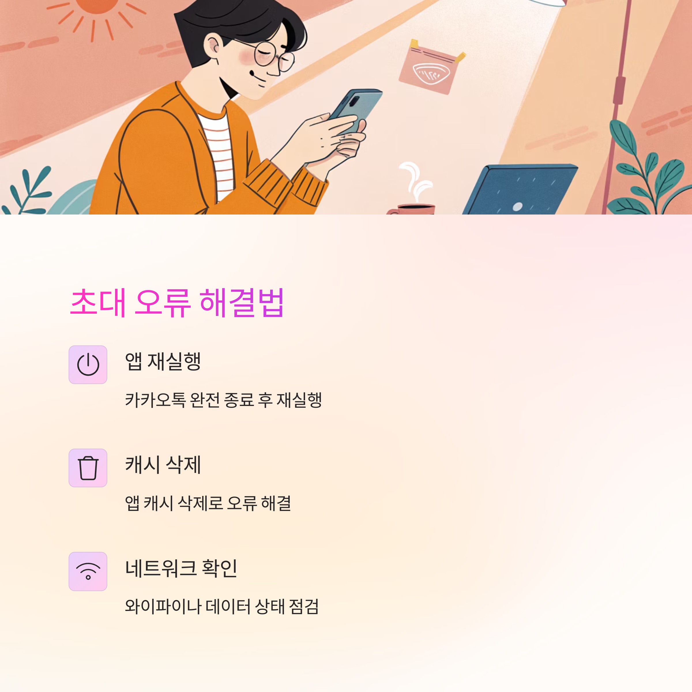 초대를 누르면 아무 반응이 없는 경우, 카카오톡 자체의 오류일 수 있어요. 가장 기본적인 해결법은 앱을 완전히 종료하고 재실행하는 거예요. 그래도 안 된다면 스마트폰 자체를 껐다 켜보는 것도 효과적이죠.