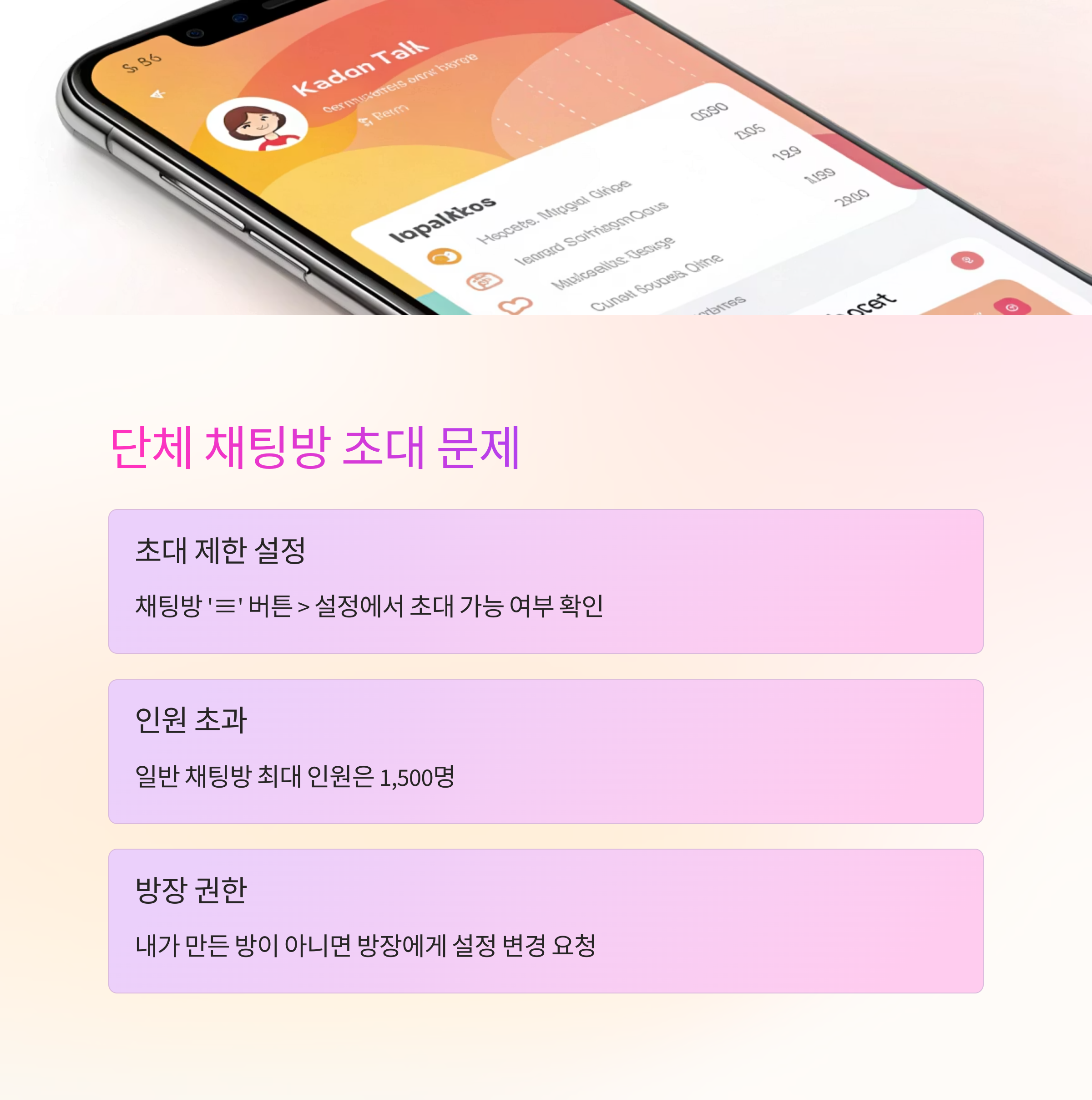 | 단톡 초대 불가 | 초대 제한 설정 | 방장에게 설정 변경 요청 |
