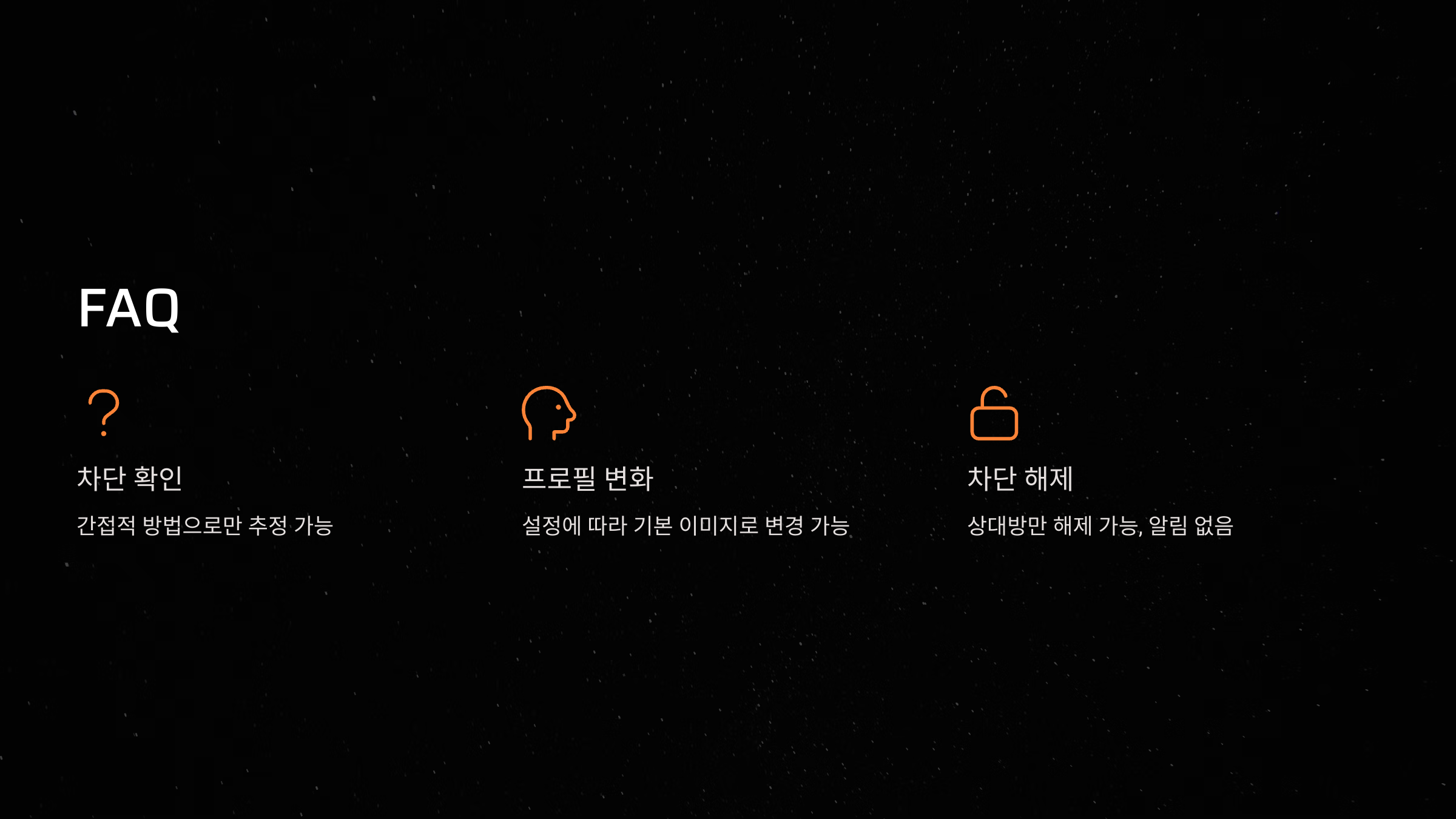 | 차단 설정 유형 | 프로필 사진 | 상태 메시지 | 기타 정보 |