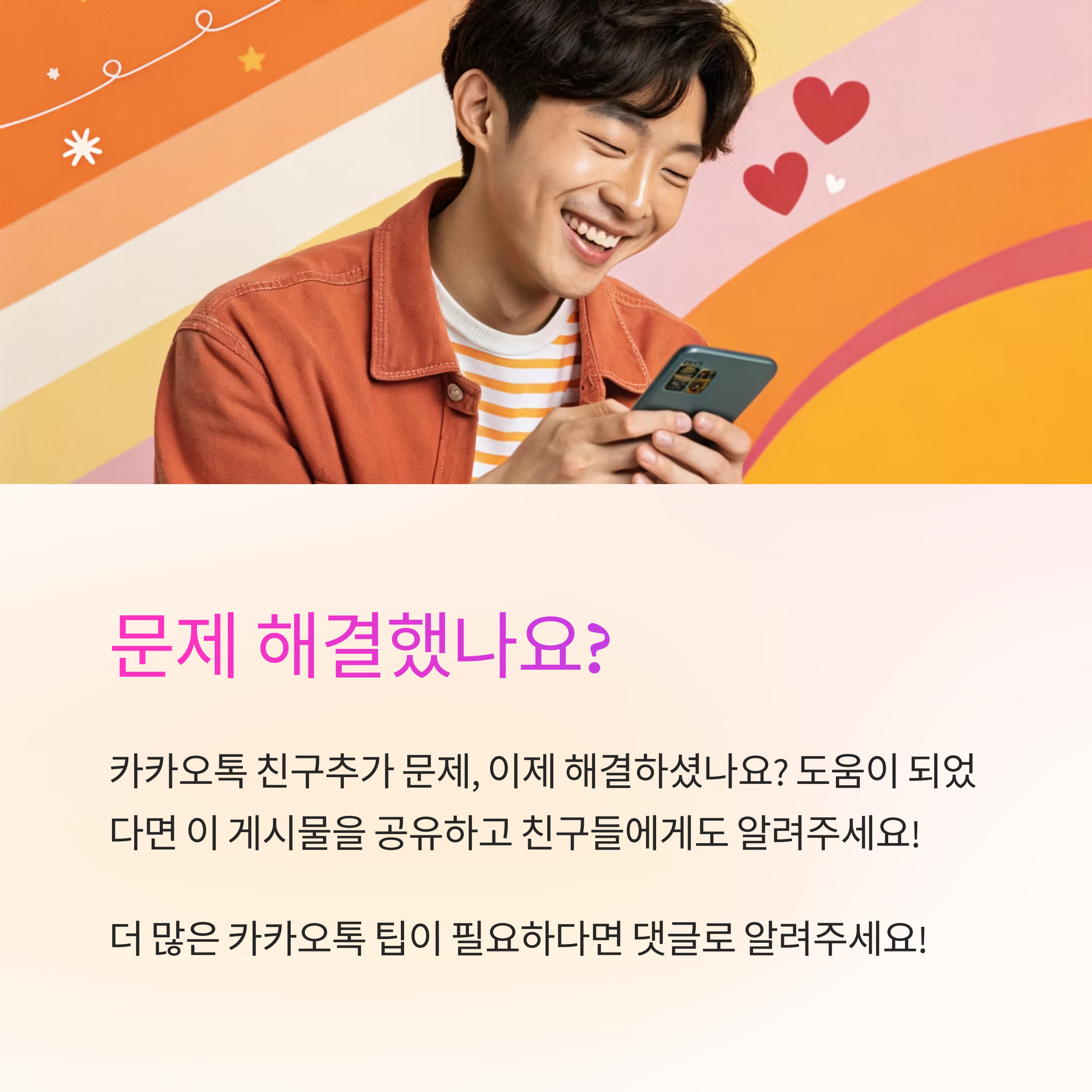 간혹 카카오계정 탈퇴 후 재가입한 경우, 기존 친구들이 새 계정을 인식하지 못해 친구 추가가 되지 않을 수도 있어요. 이런 경우 상대방에게도 새로 연락처를 저장하도록 안내하는 것이 필요해요.