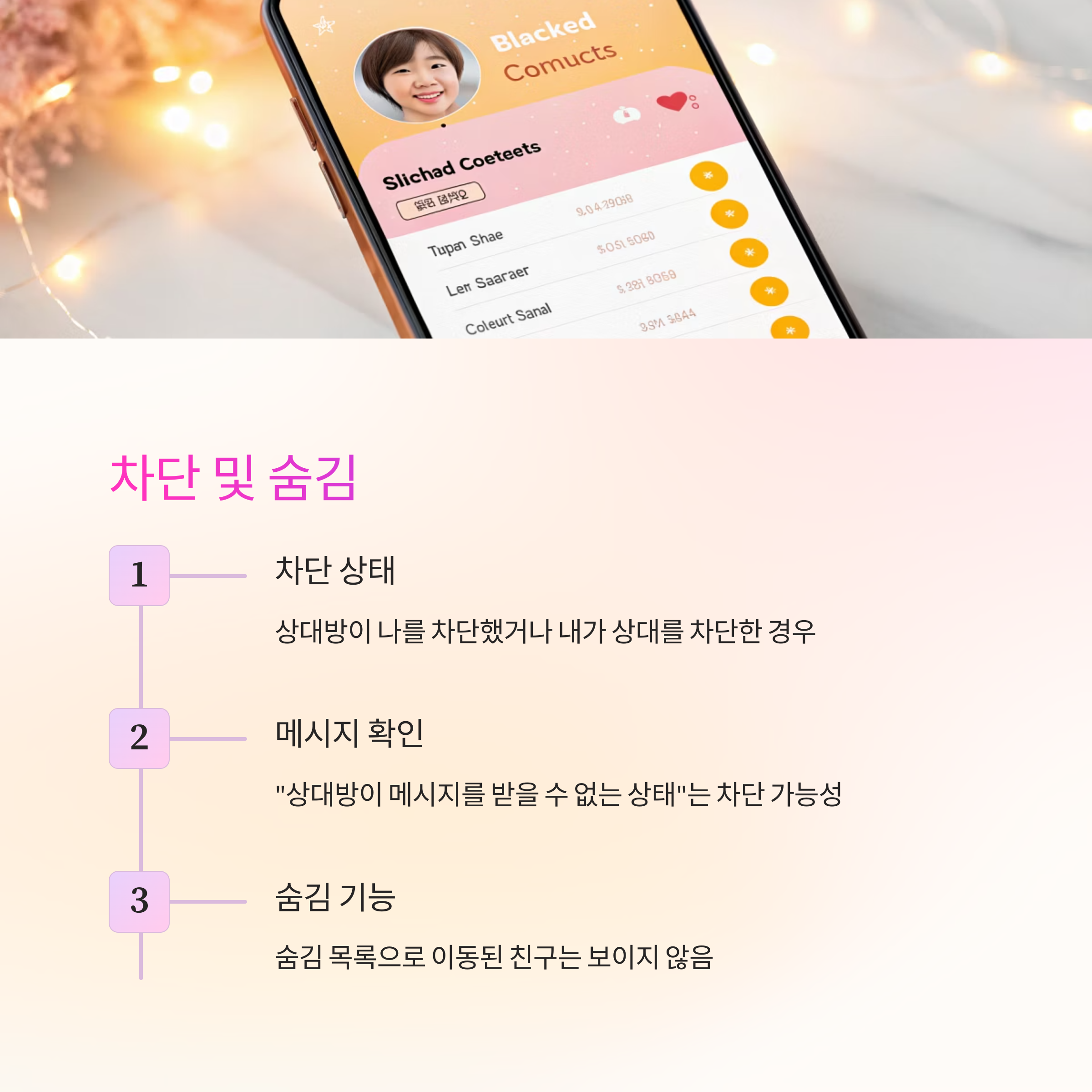차단을 풀고 싶다면 설정 > 친구 > 차단 친구 관리에서 해당 친구를 선택하여 차단 해제를 하면 다시 친구로 추가할 수 있어요. 숨김 친구도 마찬가지로 숨김 해제하면 다시 목록에 나타난답니다.