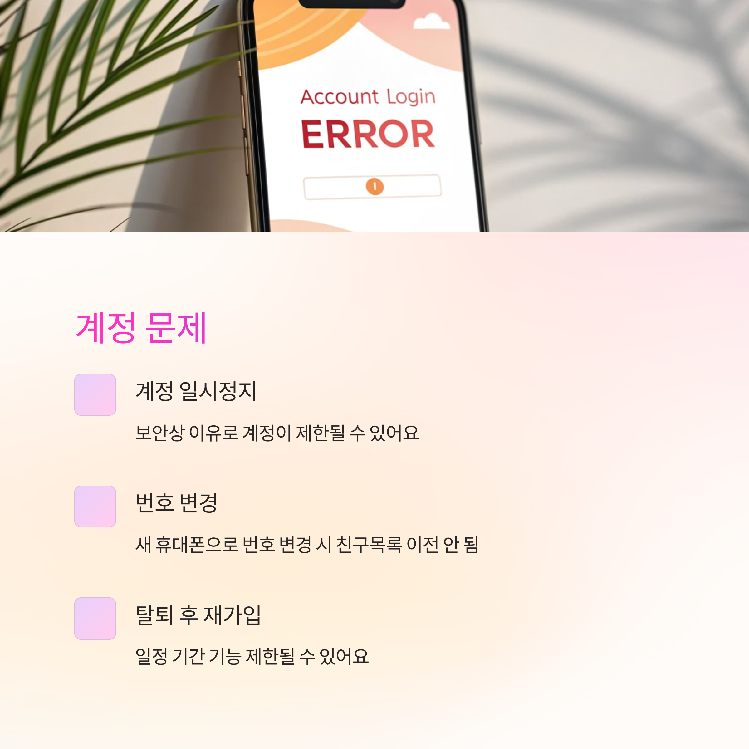 마지막으로, 탈퇴 후 바로 재가입한 계정은 일정 시간 동안 일부 기능이 제한될 수 있어요. 이 기간에는 친구 추가가 정상적으로 이루어지지 않을 수 있답니다.