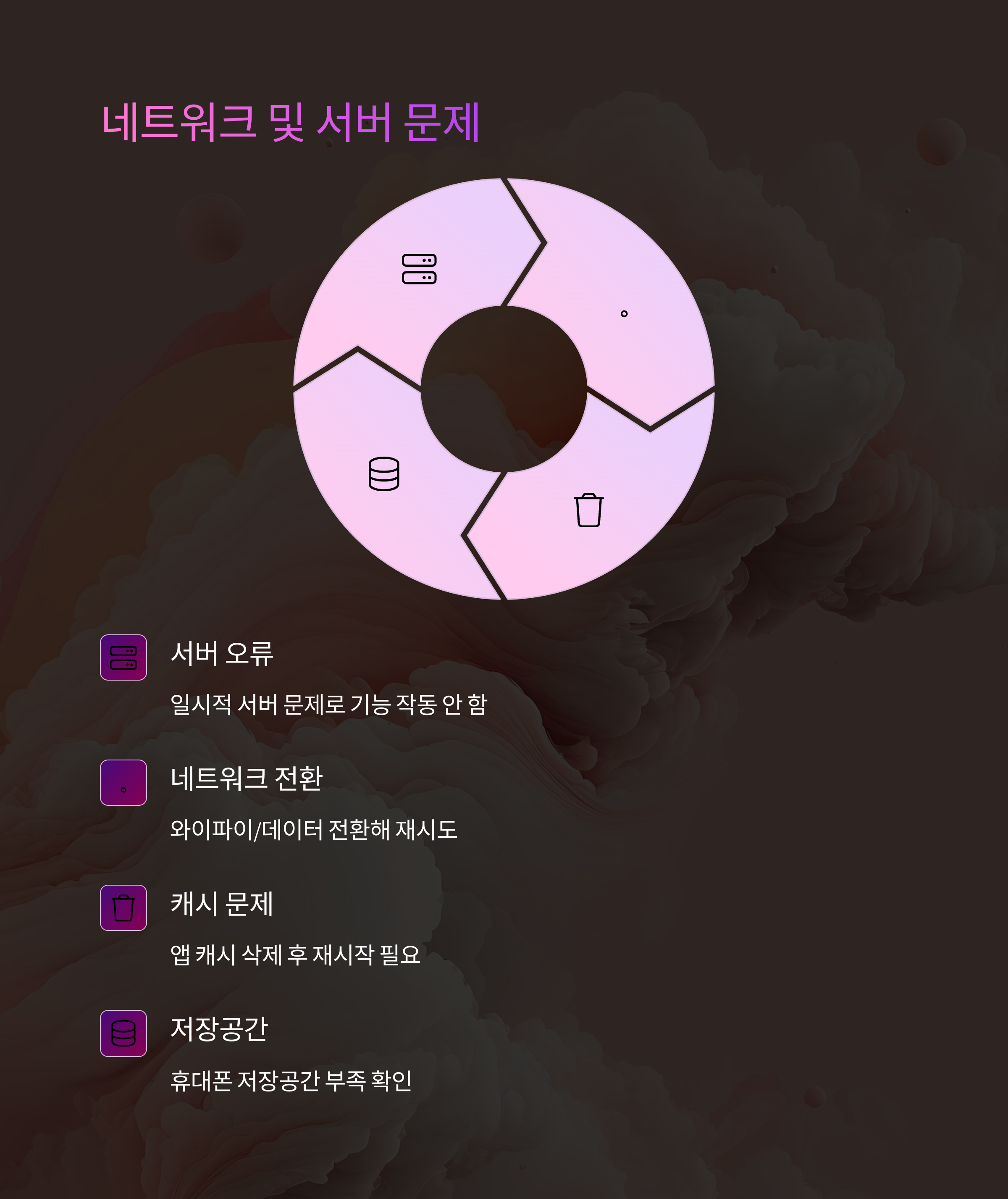 캐시 데이터가 쌓이거나 앱에 일시적인 오류가 생긴 경우도 친구 추가가 되지 않게 만들 수 있어요. 앱 강제 종료 후 재시작하거나, 설정에서 캐시 삭제를 시도해 보세요.