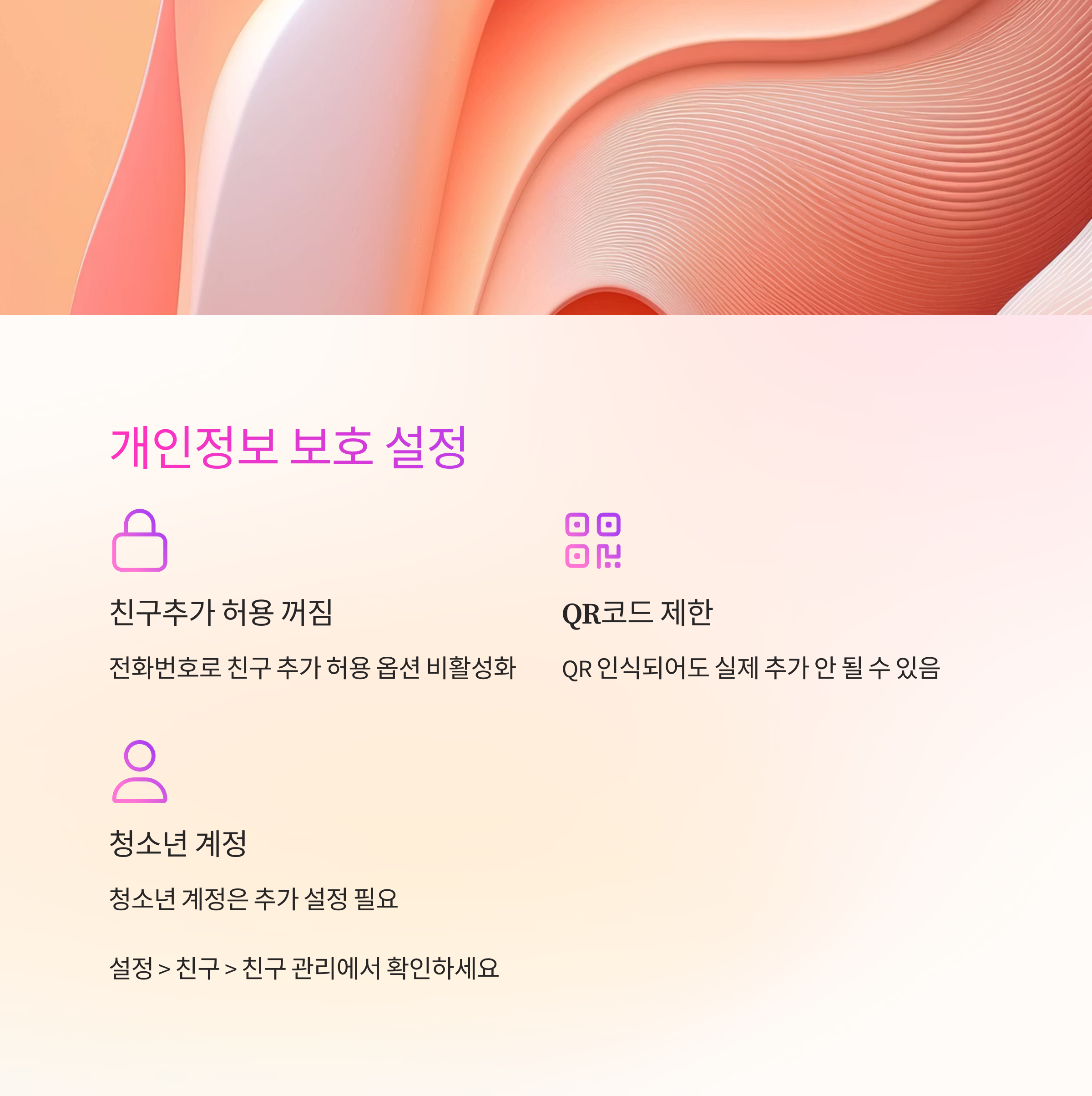 특히 청소년 보호를 위해 청소년 계정에는 일부 기능 제한이 있을 수 있어요. 이런 계정에서는 설정에서 친구 추가 허용을 별도로 켜야 해요.