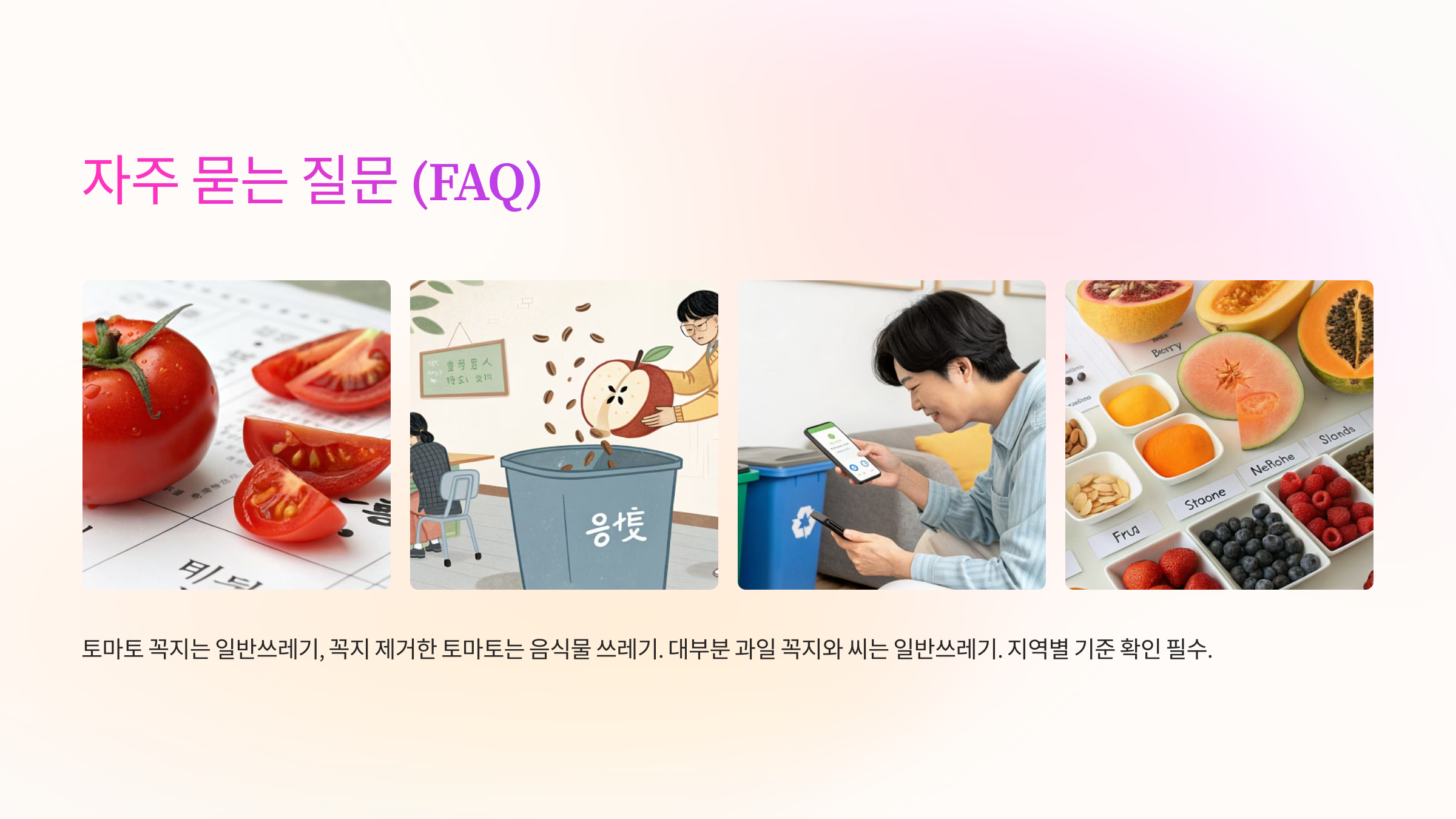 쓰레기를 올바르게 분리배출하려면, 각각의 성분이 어떻게 처리되는지를 이해하는 것이 중요해요. 토마토 꼭지는 '일반쓰레기'로 분류되며, 음식물 쓰레기와 구별해야 해요. 이런 기준은 전국 공통은 아니지만 대부분의 지역에서 비슷하게 적용돼요.