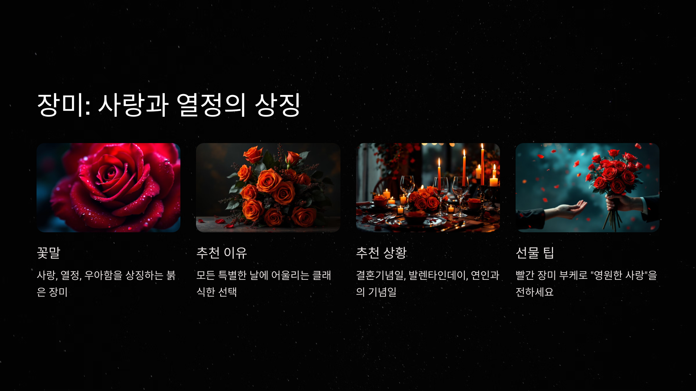 - 선물 팁: 빨간 장미로 구성한 부케를 선물하며 "당신을 영원히 사랑합니다"라는 메시지를 전해보세요. ❤️
