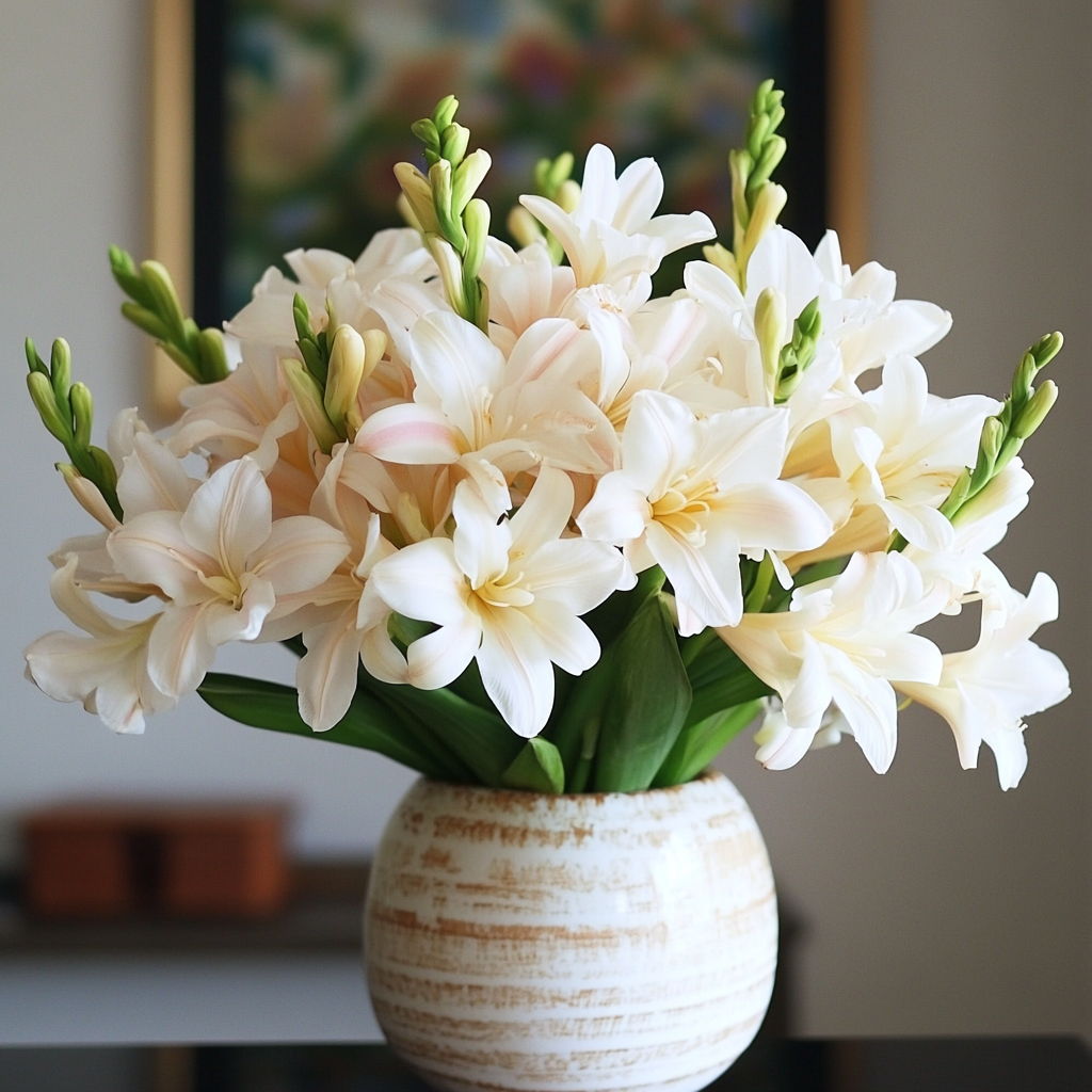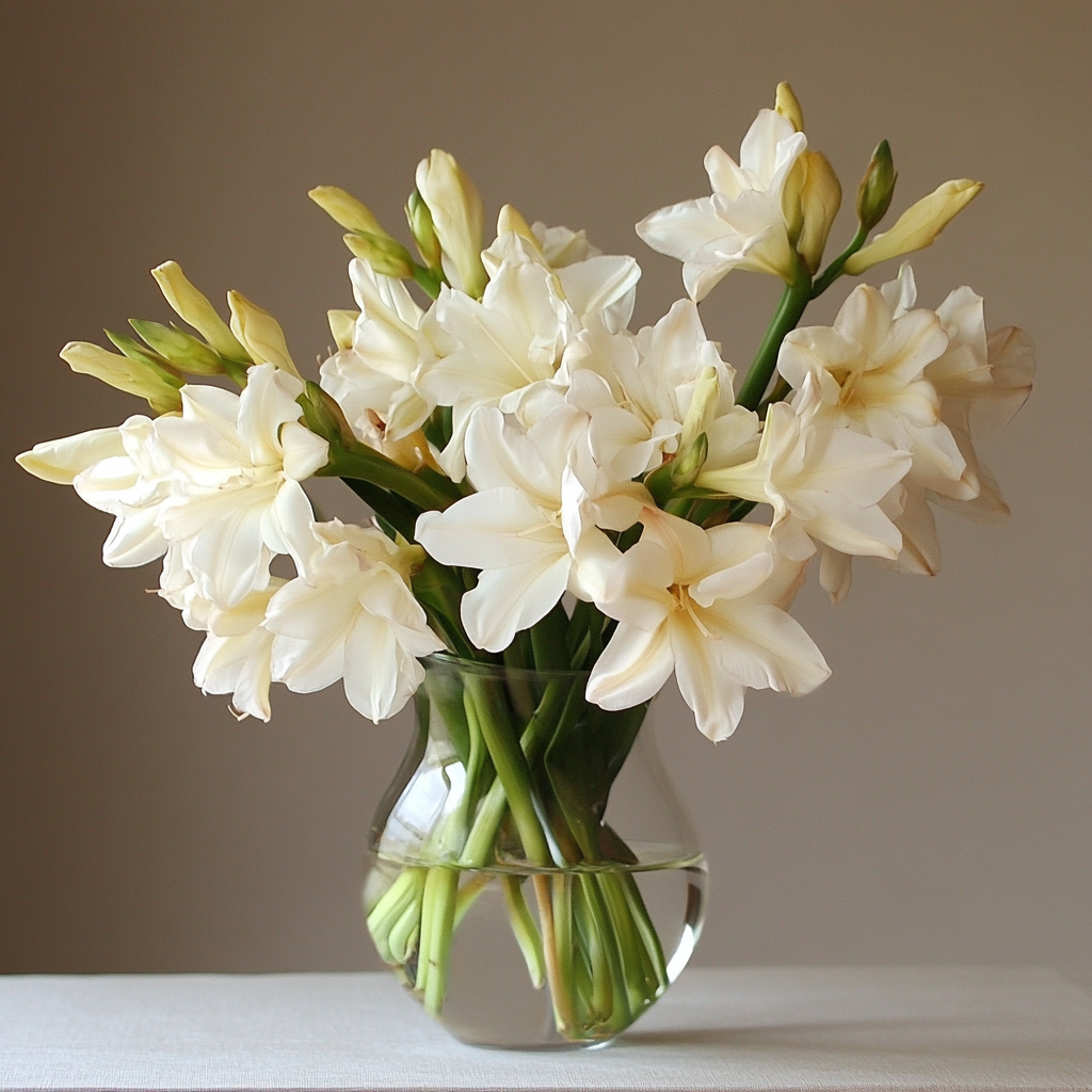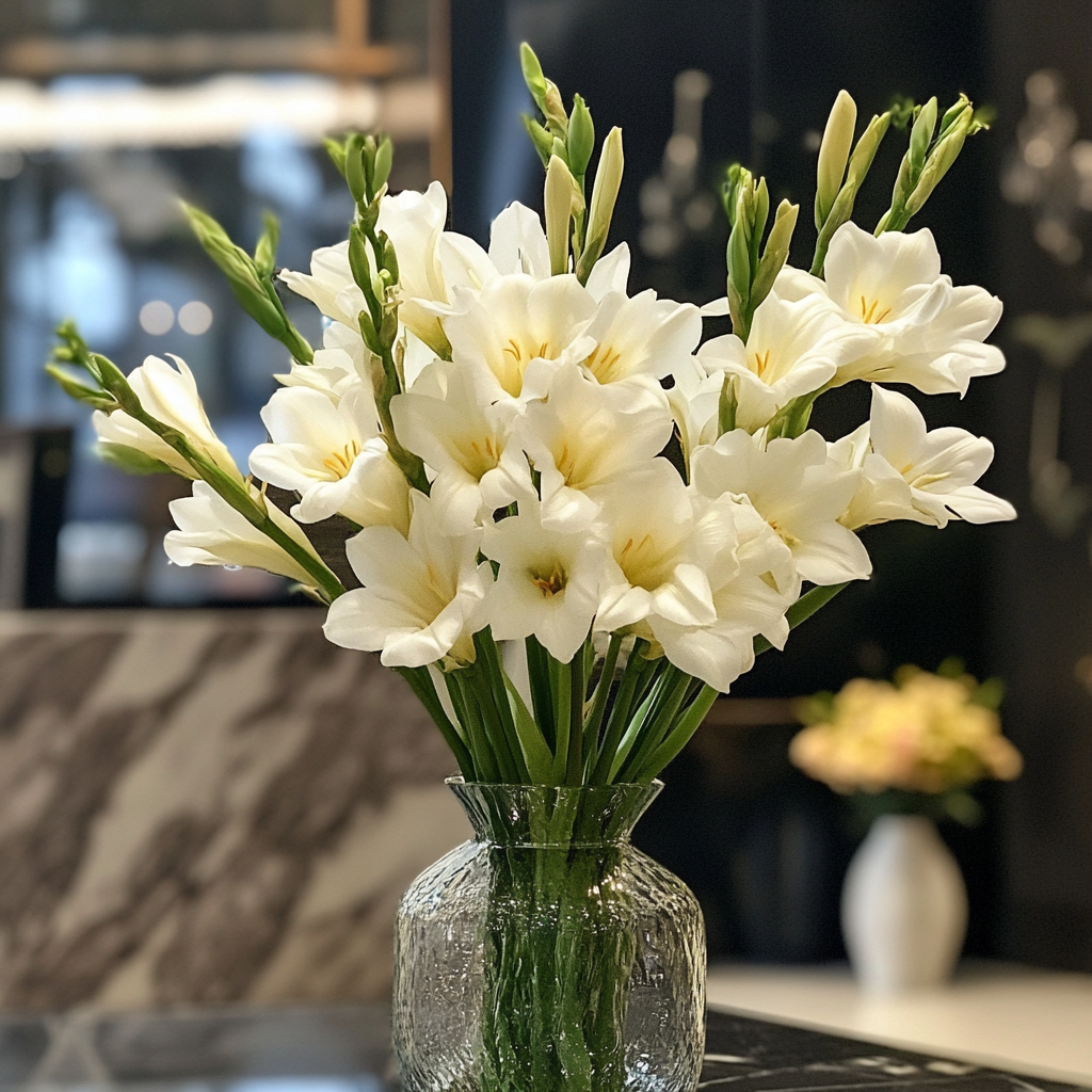 특히 흰 프리지아는 중요한 가족 행사나 기념일에 선물하기 좋으며, 그 깨끗한 이미지는 고급스럽고 세련된 느낌을 제공합니다. 흰 프리지아는 연인이나 가족에게 특별한 사랑과 감사를 표현하는 최고의 선물 중 하나로 손꼽힙니다.