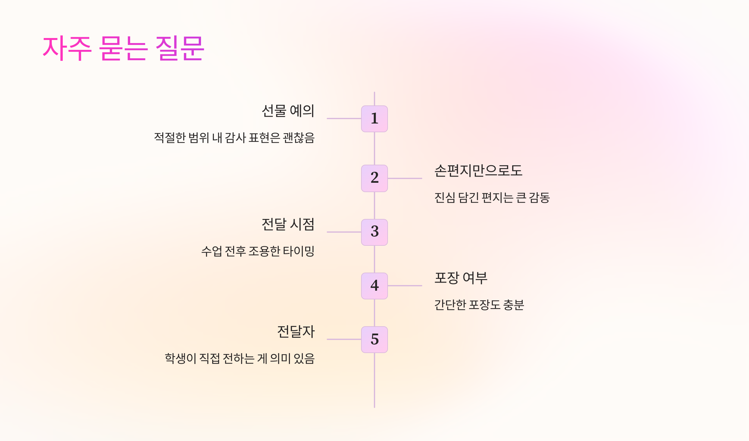 선물을 전달할 때도 예의가 중요해요. 수업 시작 전이나 끝난 후, 조용히 "감사드린다"는 말과 함께 전달하는 것이 가장 자연스럽고 선생님도 편안하게 받을 수 있어요.
