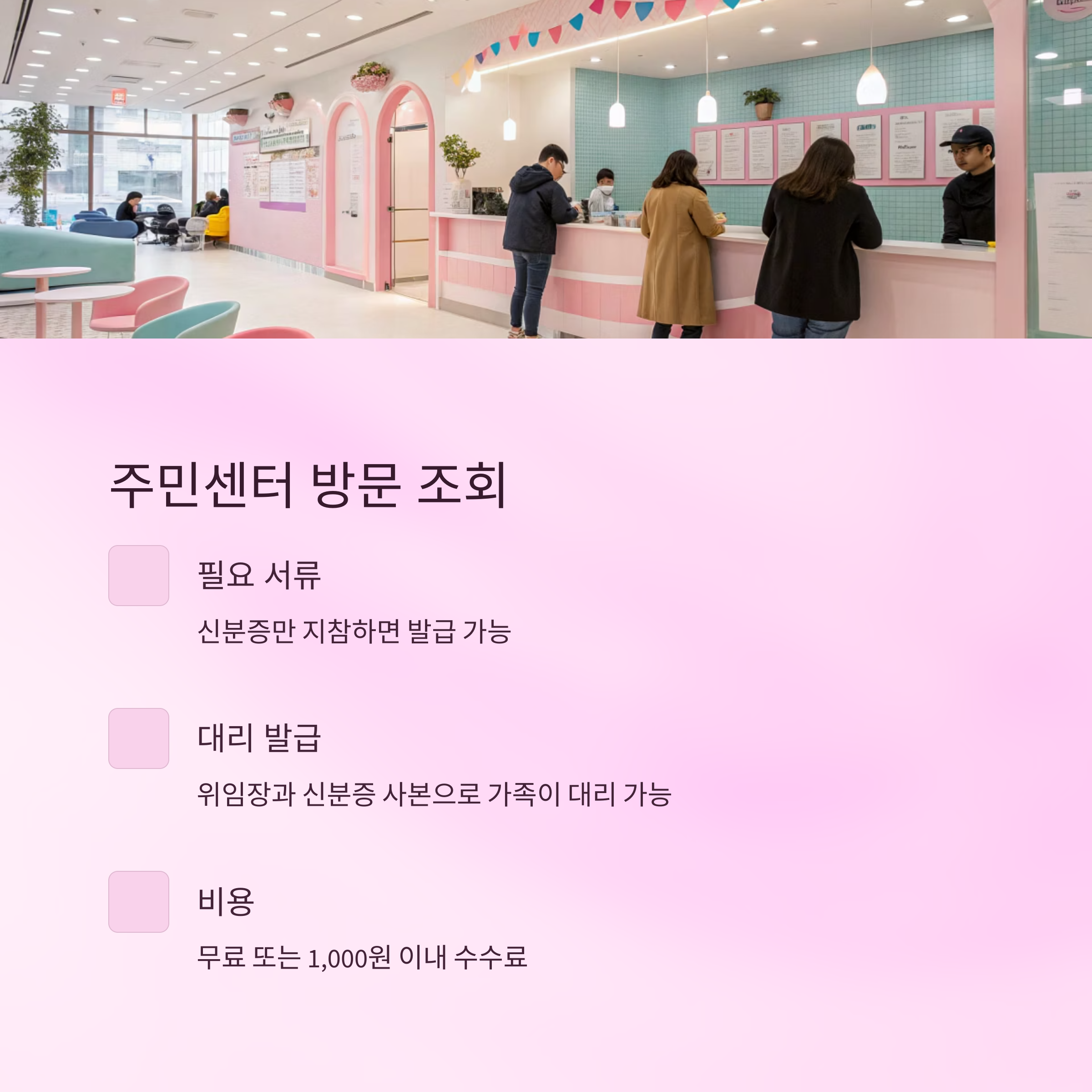 방문 발급 시 수수료는 무료이거나 1,000원 이내로 매우 저렴하며, 당일 바로 수령할 수 있어요. 종이로 인쇄된 공식 문서라서 관공서 제출용으로도 매우 적합하죠.