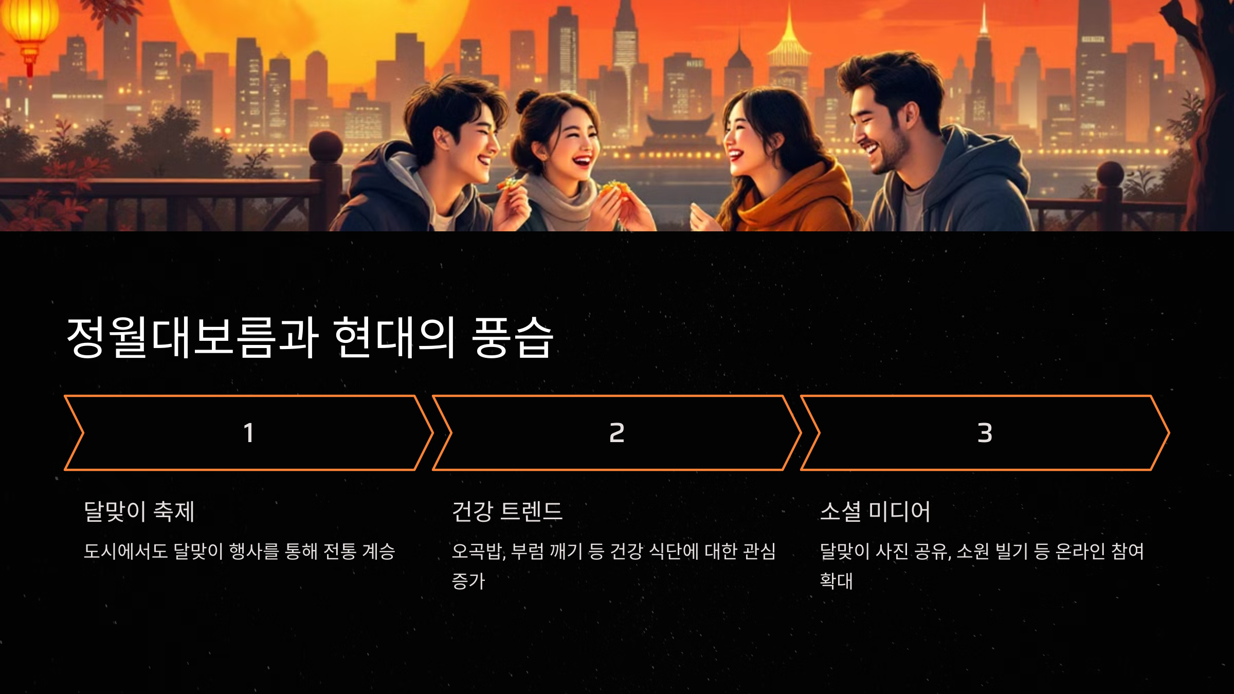 현대인들에게 정월대보름은 단순한 전통 명절이 아니라, 가족과 함께 소통하고 즐길 수 있는 특별한 시간이 되어가고 있어요. 오곡밥과 묵은 나물을 나누며 건강을 이야기하고, 달을 보며 소원을 비는 시간을 통해 바쁜 일상 속에서도 여유를 느낄 수 있답니다.