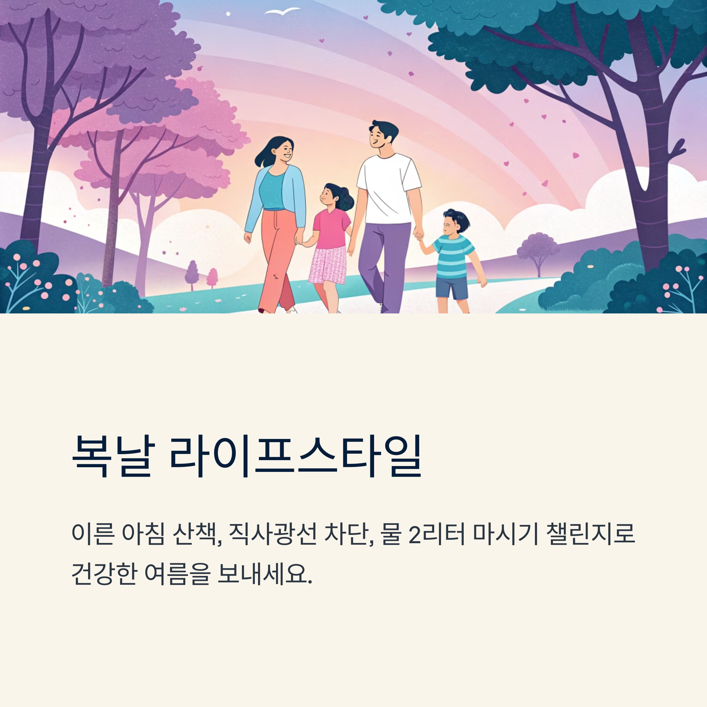 복날엔 일상의 루틴을 조금 다르게 가져가보는 것도 추천해요. 예를 들어, 오전 일찍 가벼운 산책을 하며 하루를 시작하는 것만으로도 기분 전환과 체력 유지에 큰 도움이 돼요. 이 시간대는 자외선도 약하고 공기도 상쾌하거든요.
