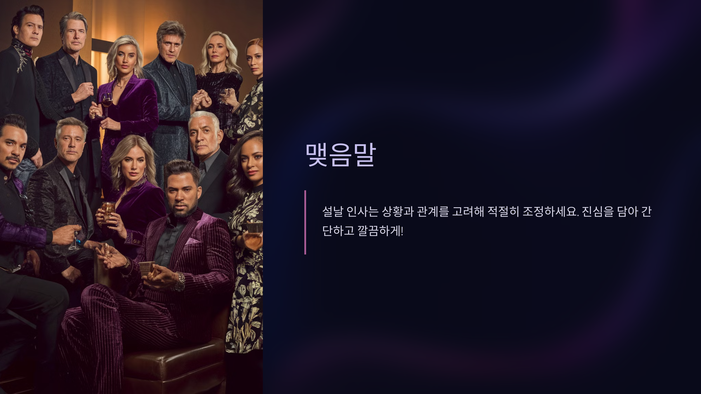 저는 이런 전통적인 설날 인사문화가 시대에 따라 변화하고 있지만, 그 중심에는 항상 정성과 진심이 있다고 생각해요. 그럼 이제 짧고 간단하지만 진심이 담긴 인사말의 중요성을 알아볼까요?