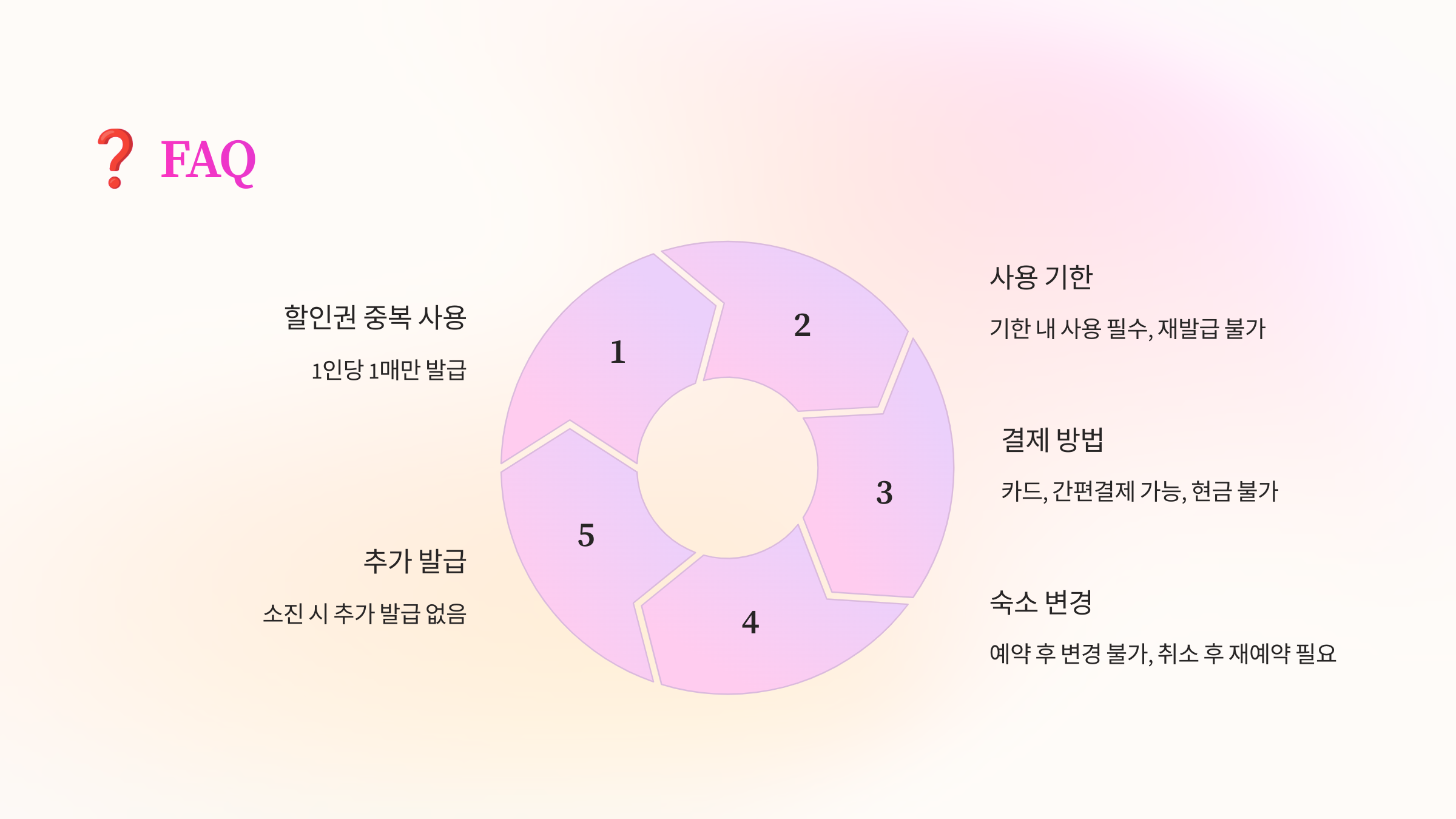 A4. 예약 완료 후 숙소 변경은 불가능하며, 취소 후 재예약해야 해요. 하지만 선착순 발급이므로 취소 후 재발급이 어려울 수 있어요.