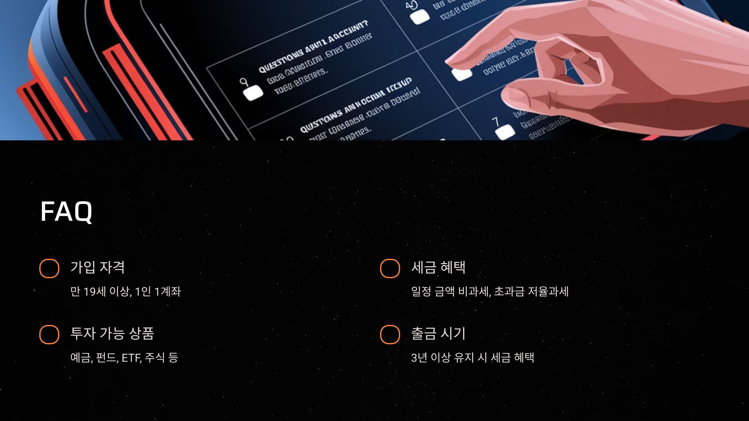 A4. 계좌 개설 후 최소 3년 이상 유지해야 세금 혜택을 받을 수 있어요. 중도 해지 시 세제 혜택이 사라질 수 있으므로 신중하게 계획하는 것이 중요해요.